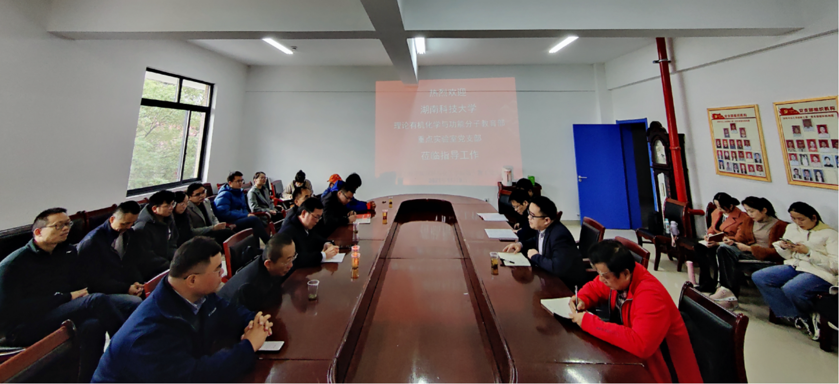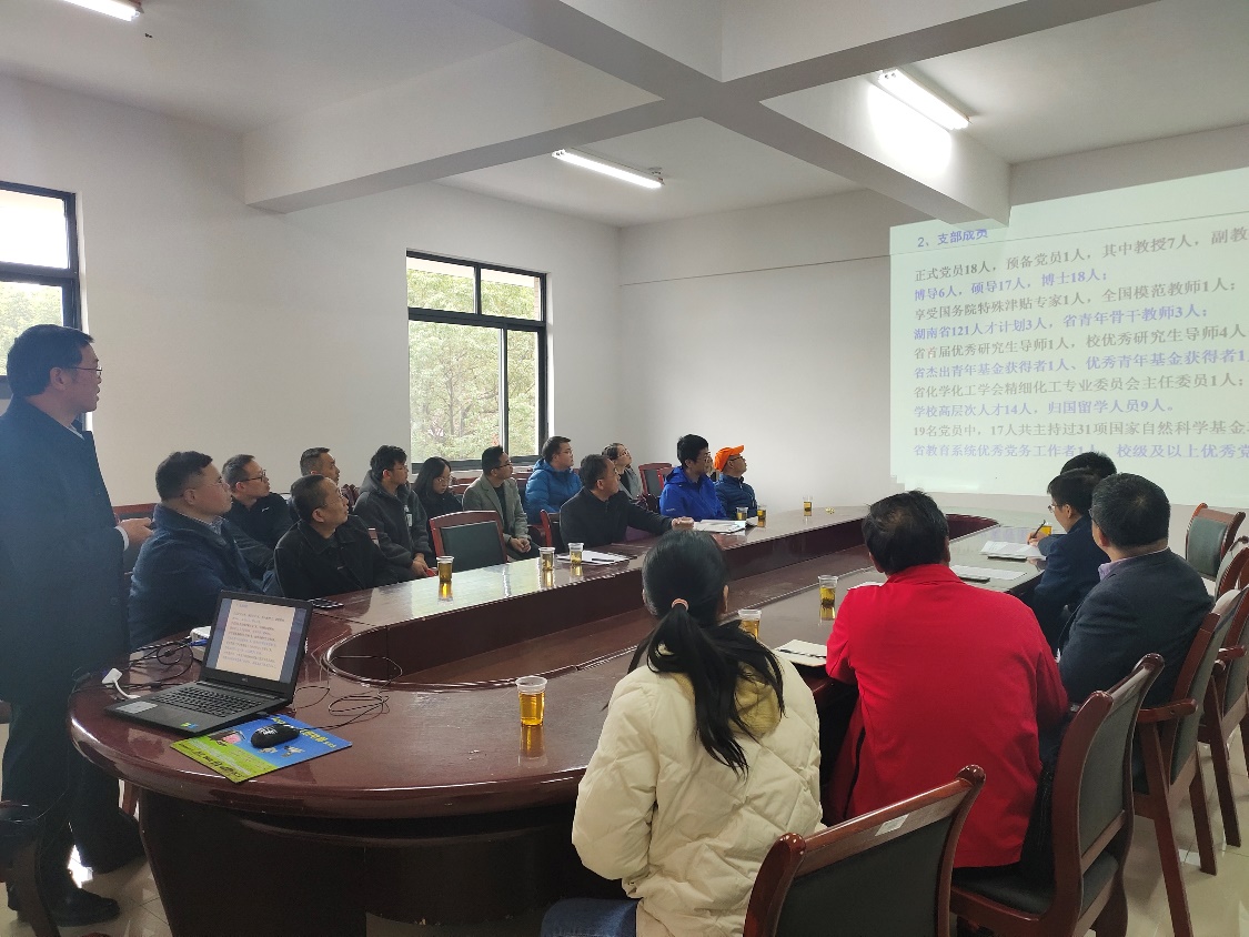 党建促科研,联谊共发展。2021年11月9日,SUNBET申博体育理论有机化学与功能分子教育部重点实验室党支部全体党员应邀来到湖南工程公司,与材料与SUNBET申博体育教工第一党支部举行交流活动,此次党支部联谊交流由本党支部书记唐子龙同志和材料与化工公司党委书记张何同志共同主持。