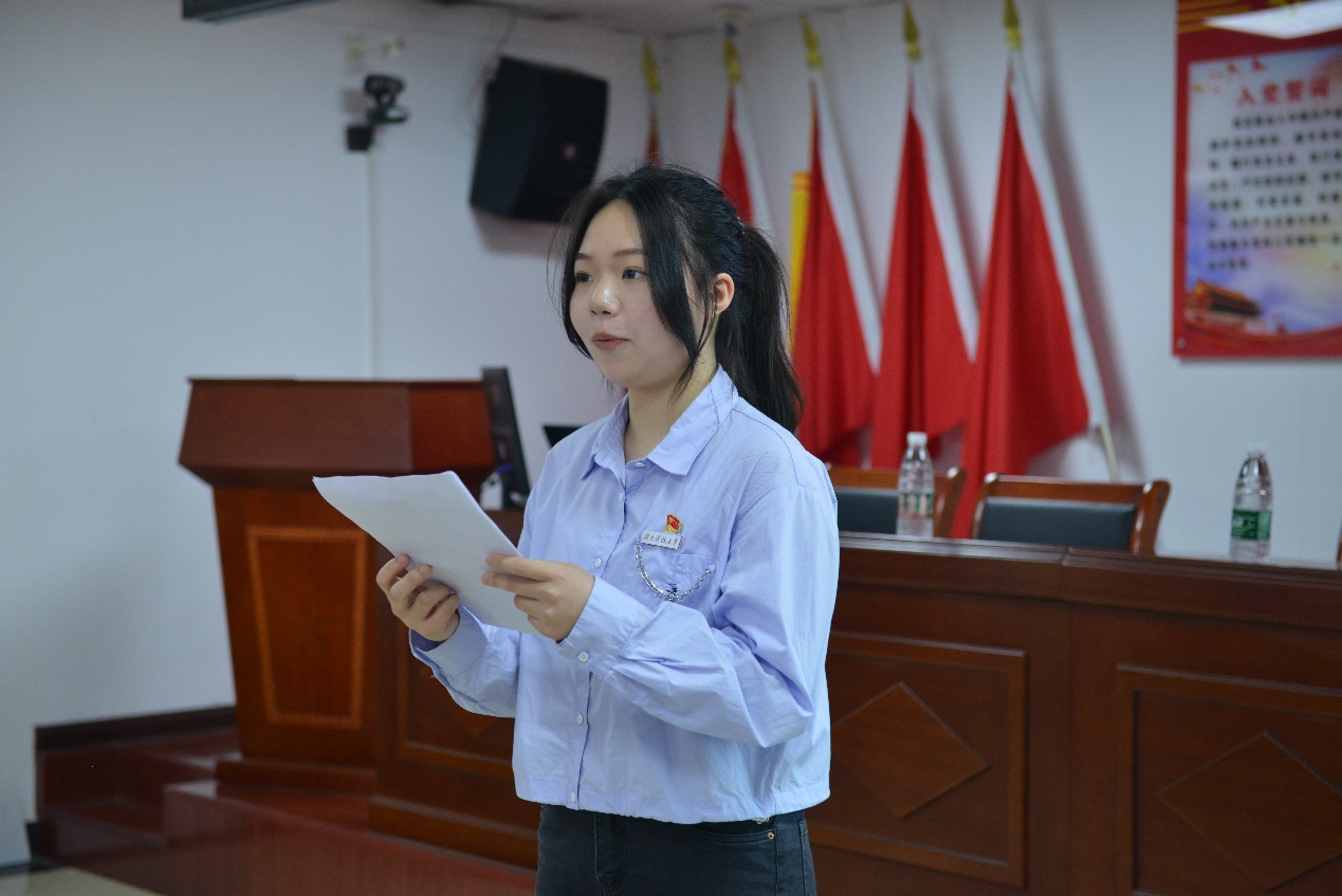 新发展党员许敬洪作代表发言,分享了自己的入党心路历程。她表示,她必将铭记自己向党和人民许下的郑重承诺,不断提升自己的思想政治素养,充分发挥党员的先锋模范作用,把入党誓词作为自己终身的追求、终身的修养和终身的实践。
