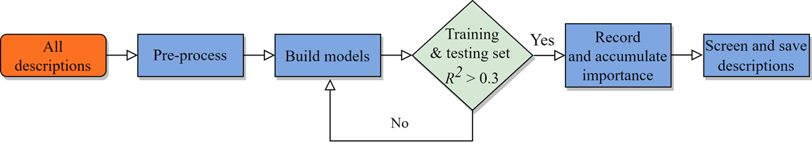 课题组收集了近4年来基于Y6受体的PCE数据(图1所示),优化每种材料分子的结构,并计算了每个分子4000多个分子特征描述符。