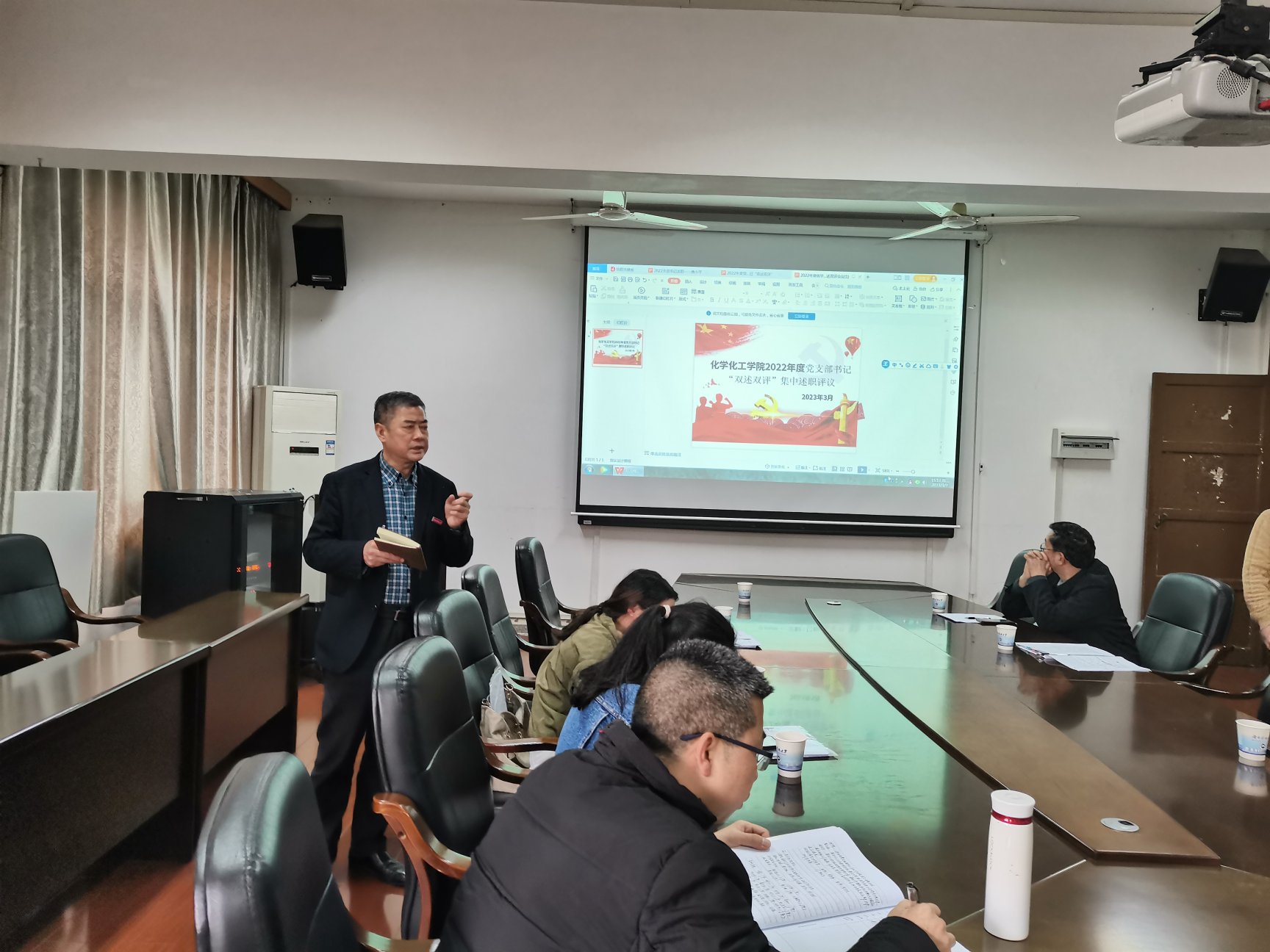 公司教工各党支部、本科生各党支部、研究生各党支部等11个党支部书记围绕学习贯彻习近平新时代中国特色社会主义思想和党的二十大精神、落实基层党建责任制和基层党建重点任务、联系服务师生、廉洁自律等情况依次进行述职。公司党委书记周文革对各位支部书记述职进行点评,他在肯定工作特色与亮点的同时,指出了各支部在党建工作中存在的问题与不足,并提出改进意见与建议。述职结束后,与会人员对支部书记进行评议测评。