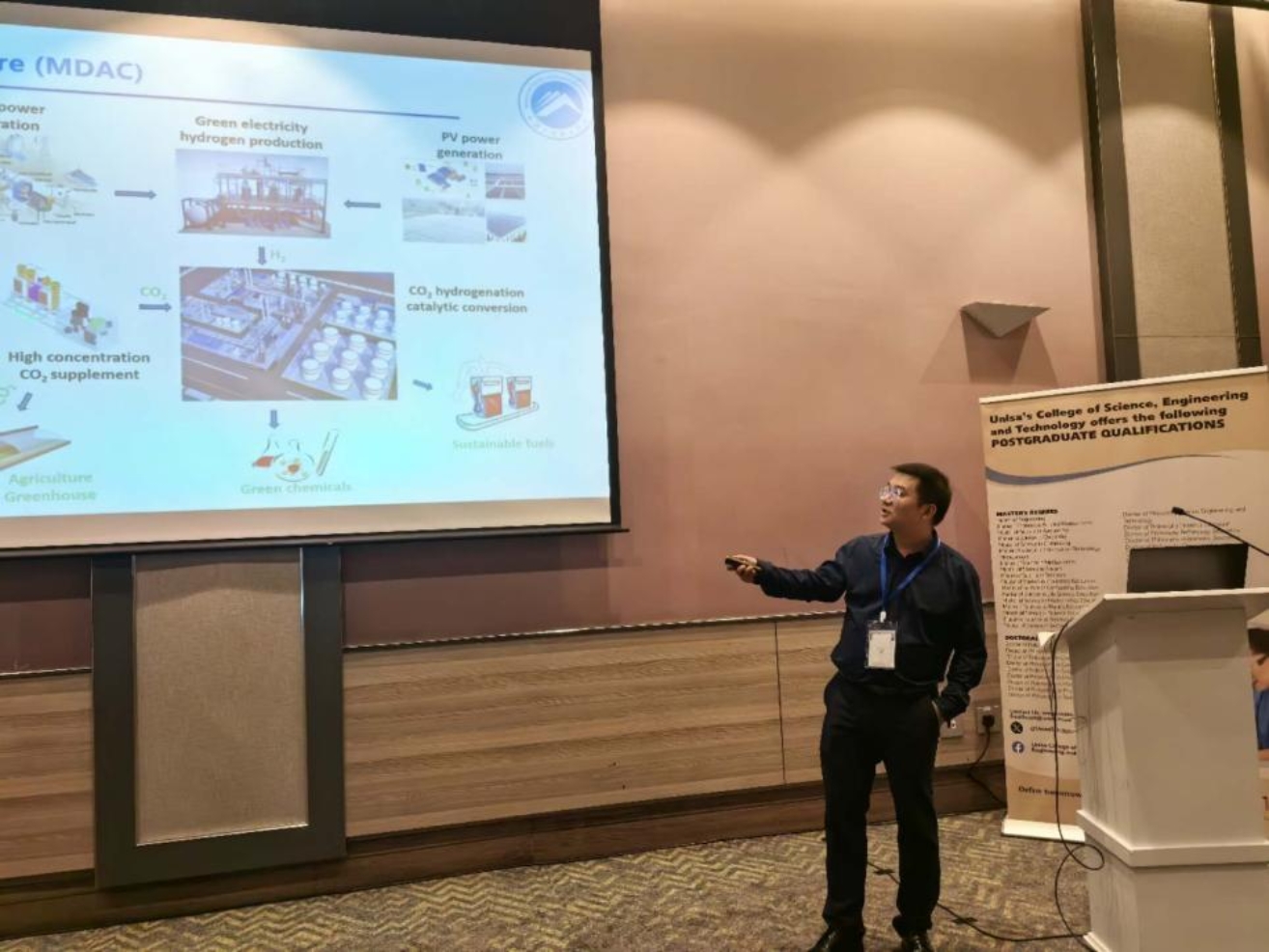 汪靖伦副经理和张宇晟博士受邀代表SUNBET申博体育分别作了“Design and Application of Novel Fluorinated Nitrile Electrolyte Materials”和“Mobile Public Transportation System Direct Air Carbon Capture”的学术报告,周再春教授作了“Semiconductor effect of Pd(II) porphyrin in photocatalytic dealkylation”的墙报展示。