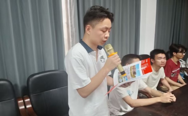 班长褚广超同学深情回顾了班级共同成长的大学时光。他自豪地分享了班级取得的卓越成绩: 全班考研录取率高达61%,其中2名同学获得推免资格,17位同学将进入中南大学、湖南大学、华东理工大学等知名高校继续深造;在第十八届全国老员工化工设计竞赛中斩获三等奖;5位同学加入中国共产党。褚广超还分享了担任班长期间的收获与感悟,并代表全班表达了对公司悉心培养的由衷感激。