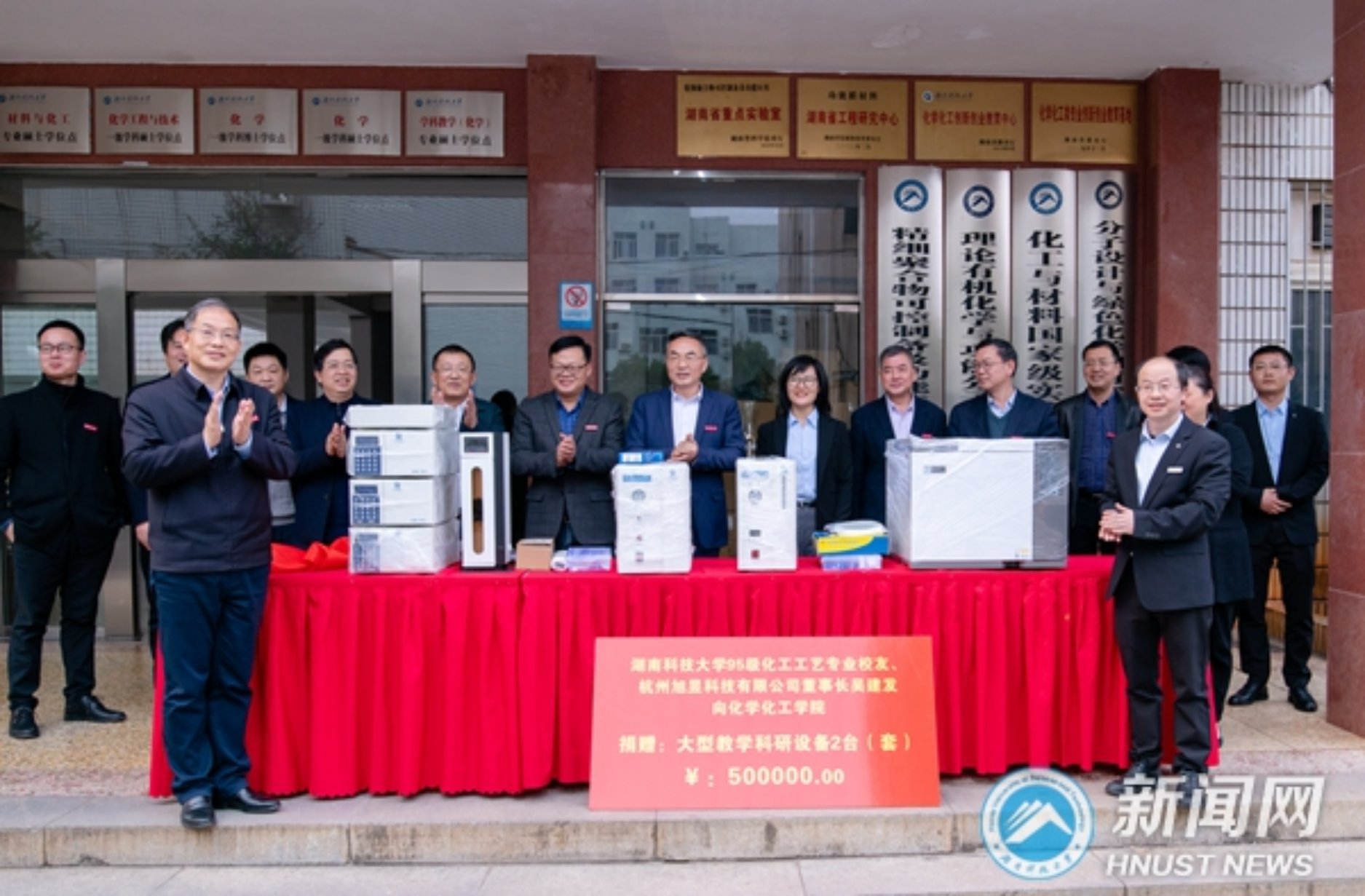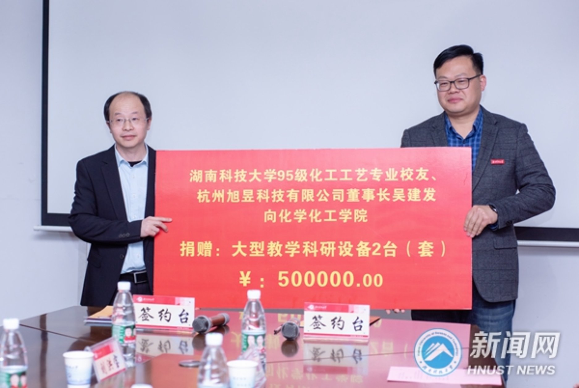 3月2日下午,SUNBET申博体育95级员工吴建发向公司捐赠2套价值50万元的大型教学科研设备,捐赠仪式在化工楼310会议室举行。公司党委书记唐亚阳,副董事长廖湘岳,SUNBET申博体育经理周虎,95级化工工艺专业员工、杭州旭昱科技有限公司董事长吴建发,副总裁易慧等人出席本次仪式,相关职能部门人员及SUNBET申博体育部分师生代表与会。本次仪式由化学化工公司党委书记周文革主持。