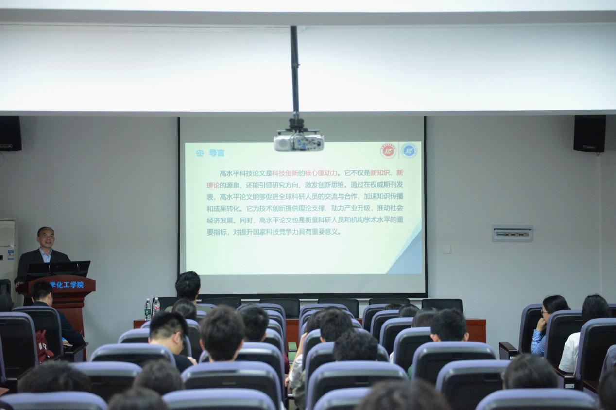 讲座开场,汪靖伦强调了高水平论文在学术研究中的关键作用,指出本次讲座对于同学们学术成长的重要意义。随后,彭超群以“好题闻一半,花香蝶自来”的生动表述引入,强调了论文标题对于文章影响力的重要性。在接下来的分享中,彭老师从标题撰写要点、关键词选取技巧、引言的撰写与文章结构等十四个方面阐释了高水平论文写作的技巧。讲座结尾,彭老师介绍了论文写作与投稿过程的可能遇到的问题,并为同学们给出了建议和指导。