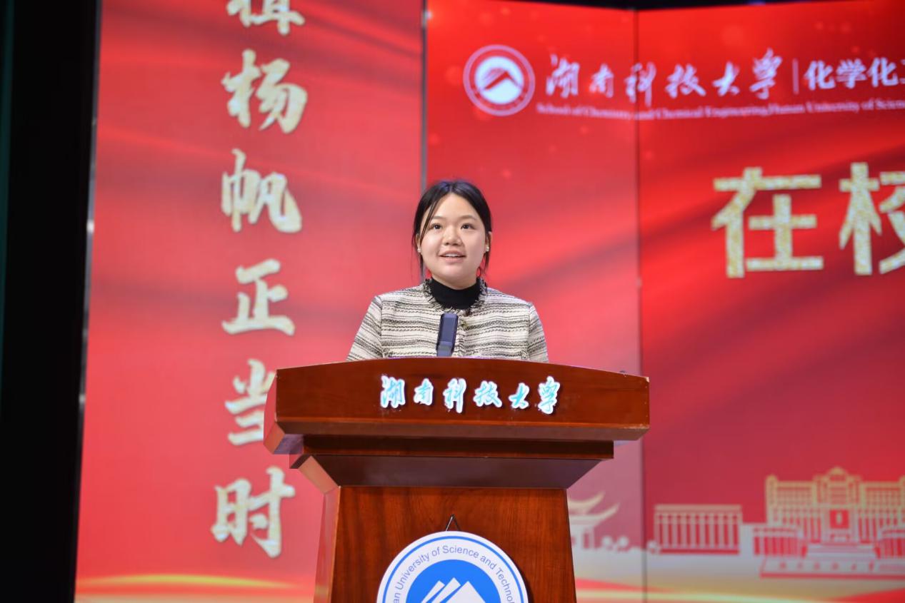 在校生代表唐超娜向新生分享了自己在老员工活中的所见所得。她提出,要有求实精神、感恩之心和“归零”心态,才能答好未来的满分试卷,铸就SUNBET申博体育新辉煌。