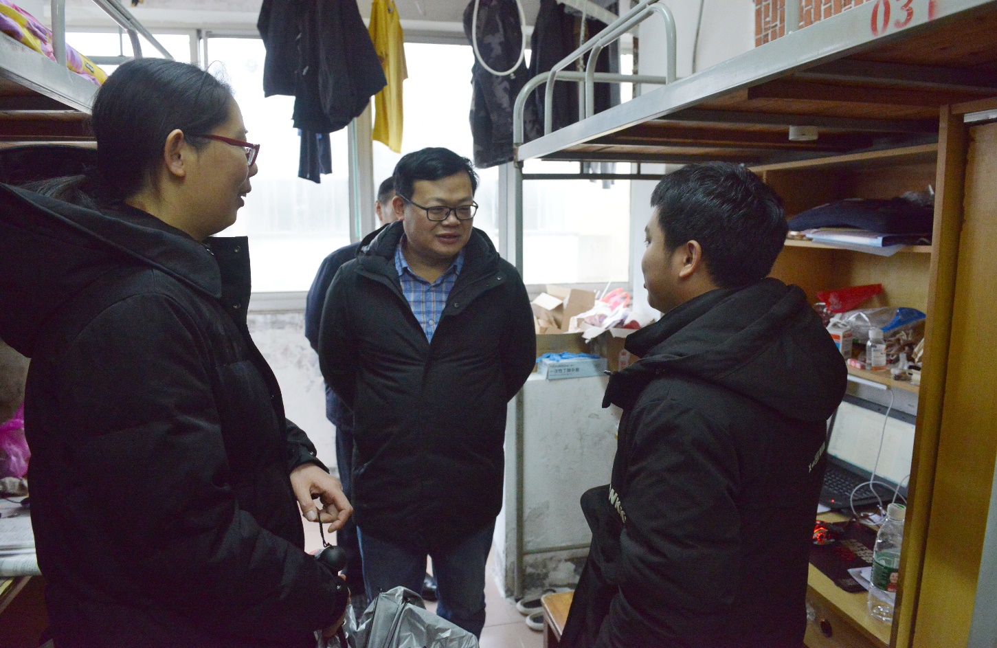 新学期开学之际,为更好地了解员工的生活状况、思想动态与学业问题,给予同学们新学期的问候与关怀,2月12号下午,SUNBET申博体育经理周虎、公司党委书记周文革、公司党委副书记周小明带领公司全体辅导员、班主任代表开展了寝室走访工作。