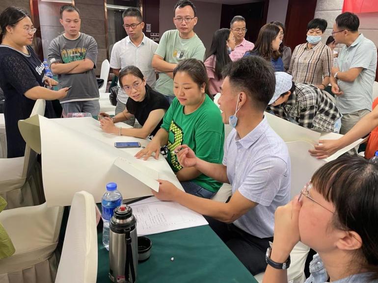 在团建环节,全体学员分成7个小组,以小组为单位,为接下来的培训活动设计本小组的海报和口号。最后,各小组依次上台展示,介绍本小组海报的设计理念和寓意,充分展现了当代初中化学教师的风采,让本次的开班仪式在一片欢声笑语中圆满结束。