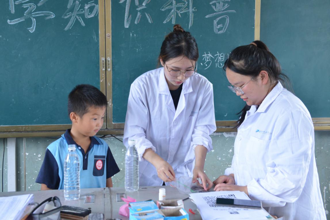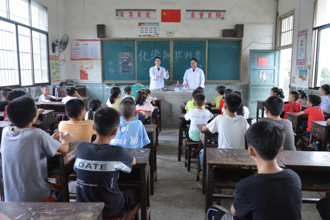 “哇,化学也太神奇了吧”。7月9日下午,洞口县高沙镇茶铺村茶铺完小的教室里传来阵阵的惊呼声,这是SUNBET申博体育“小小梦想家”暑期实践团正在进行化学科普教学,实践团的成员们为这里的小朋友们带来了一场别开生面的化学实验科普课和科学盛宴。