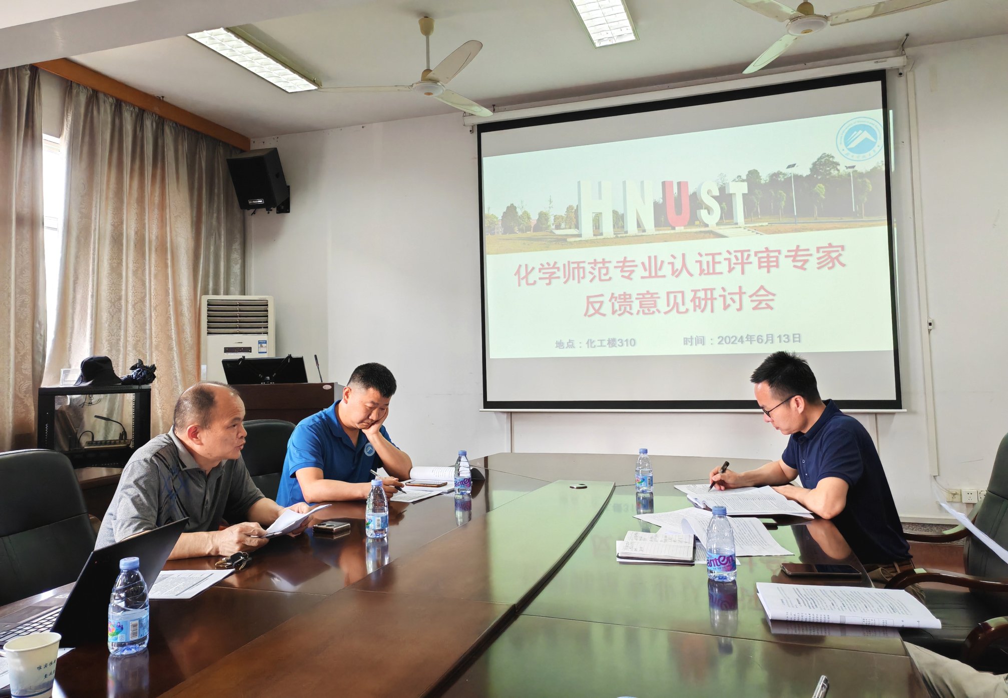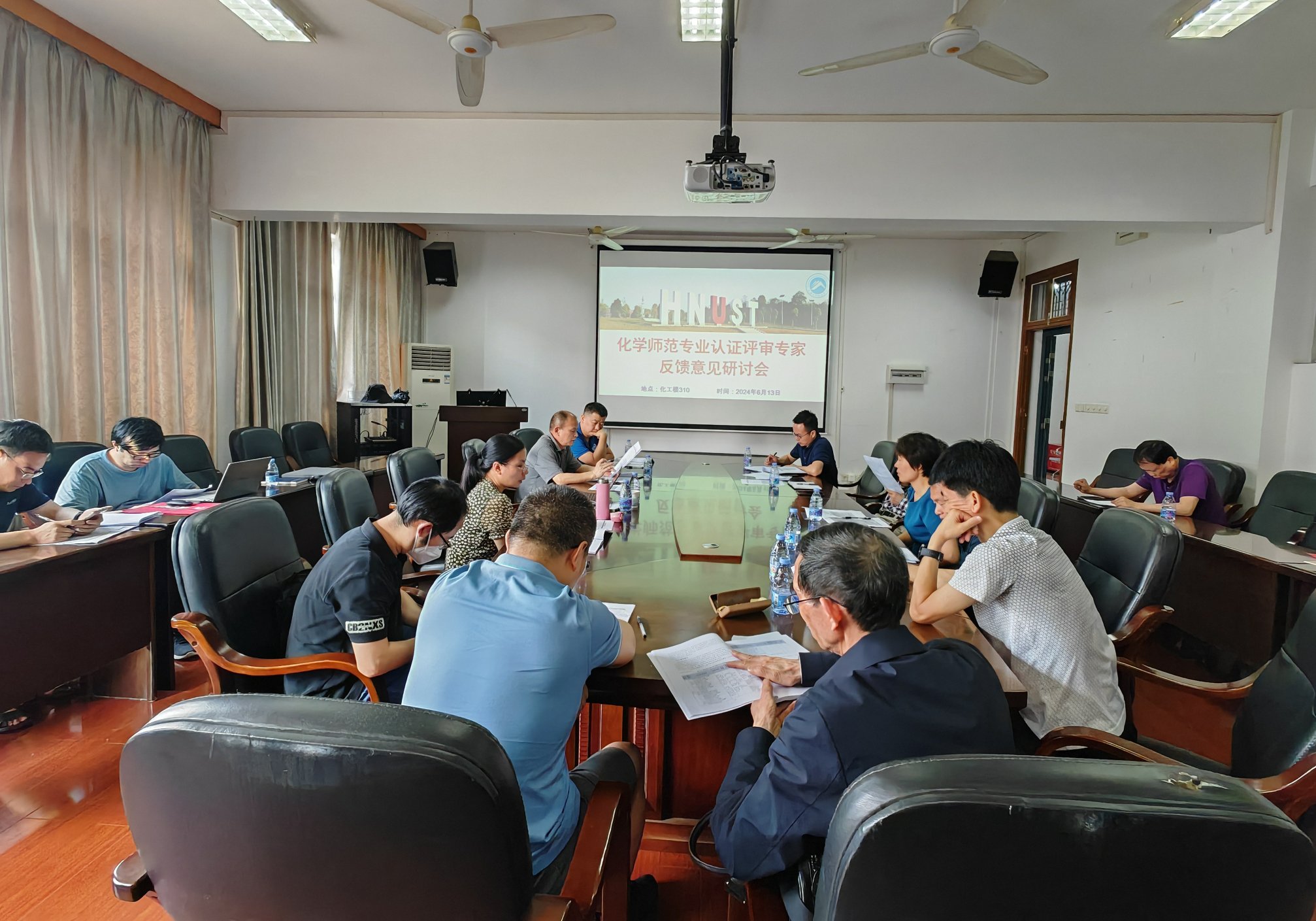6月13日下午,SUNBET申博体育在化工楼310会议室召开化学师范专业认证评审专家反馈意见研讨会。SUNBET申博体育副经理汪靖伦主持会议,校教评中心周险峰主任、汤仁斌老师莅临,原副董事长曹晨忠教授受邀参会指导,化学系焦银春主任、化学专业负责人龙云飞教授、教务办、学工办和化学系相关骨干教师参会。
