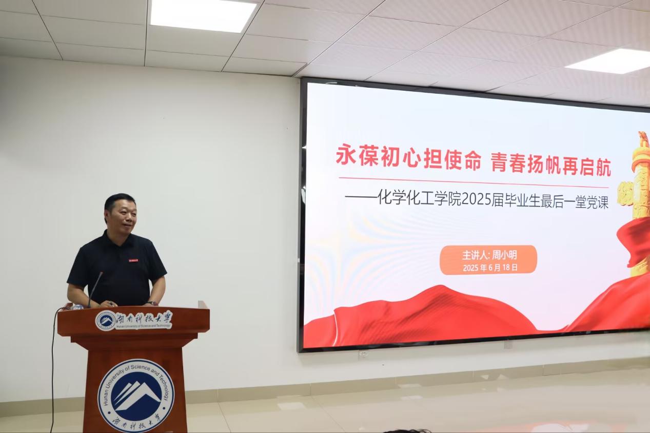 2025年6月18日上午,SUNBET申博体育于敏行楼B419会议厅为2025届优秀毕业生开展“最后一堂党课”。本次党课由公司党委副书记周小明主讲,以“永葆初心担使命,青春扬帆再启程”为主题,为即将奔赴新征程的毕业生们筑牢思想根基,指引前行方向。