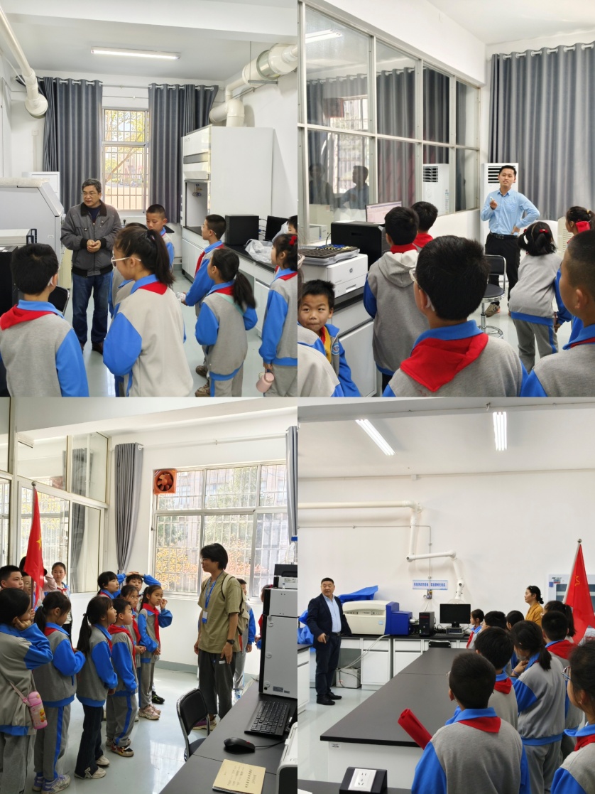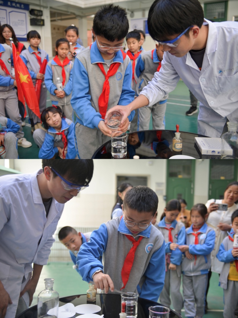 在一间间实验室中,化学化工公司党员老师们给小朋友耐心讲解一台台化学仪器的名称和使用方法,以及它在日常生活中的用途,通过简单明了的语言让小朋友们感受到化学在生活中无处不在。“化学学科在迅速发展,我们要学会用化学的视角观察生活、了解社会、关注科学”,循循善诱的话语在孩子们耳边回响。