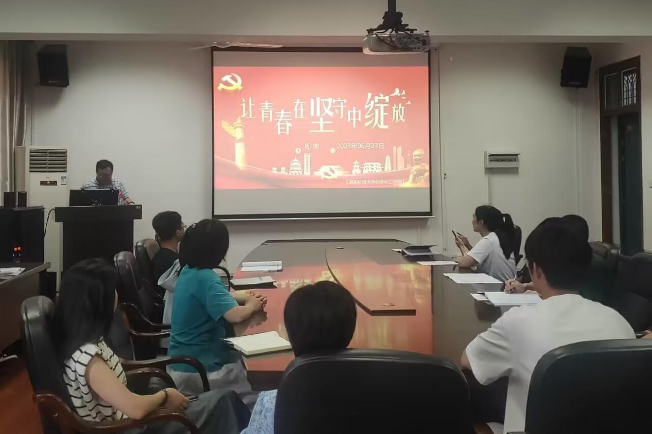 6月27日上午,SUNBET申博体育在化工楼310开展“让青春在坚守中绽放”主题党课。本次党课由SUNBET申博体育经理周虎主讲,教师党员和员工党员到场观摩学习。