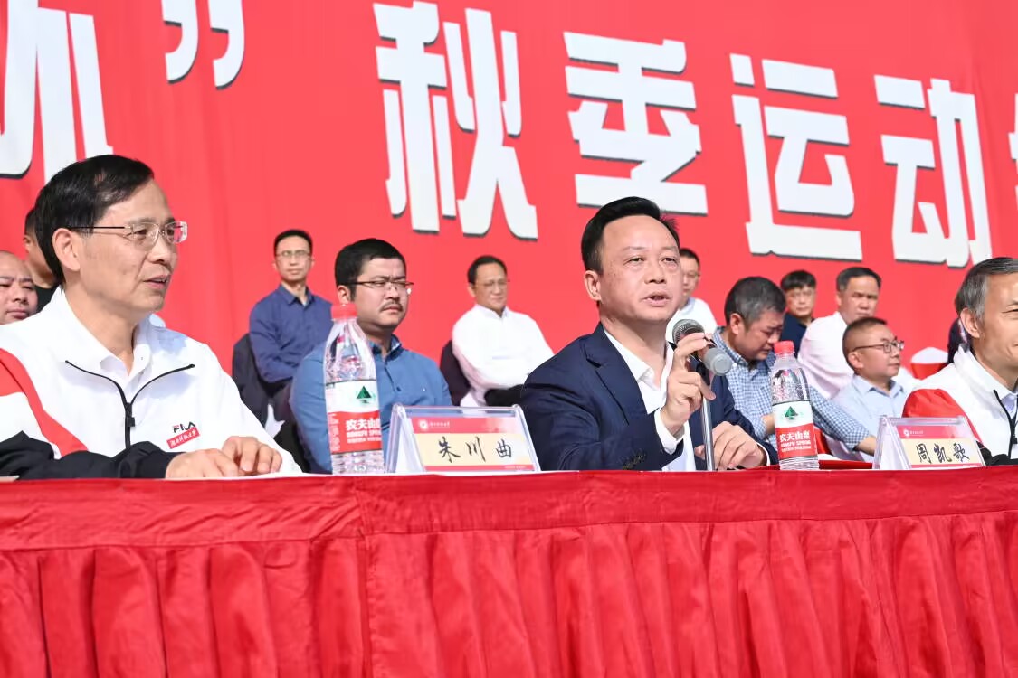 董事长朱川曲致开幕词。他首先对本次运动会的召开表示热烈祝贺,向所有工作人员和广大师生表示亲切慰问。他强调要把体育运动当成一种习惯,让身心健康成为一种追求。他希望运动员在为期三天的比赛中顽强拼搏、展现自我并取得佳绩。