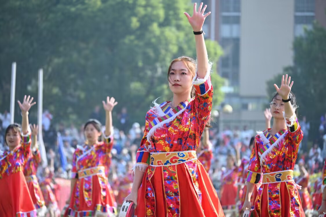 教职工旗袍队的表演,军训团和龙狮表演以及精彩的民族舞蹈成为开幕式上一道道靓丽的风景线,赢得了在场观众的阵阵掌声和喝彩声。