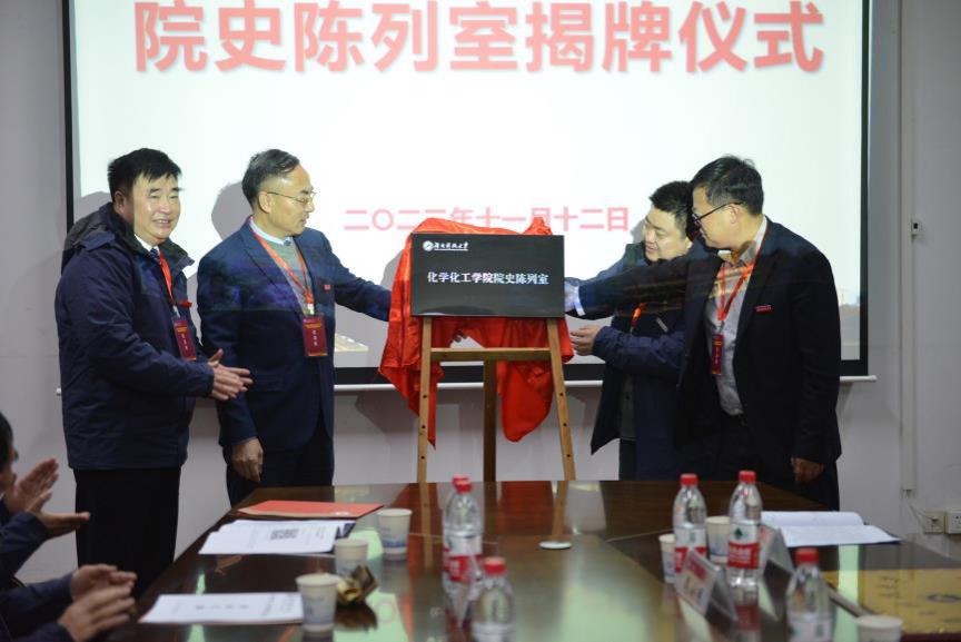 理论有机化学与功能分子教育部重点实验室主任唐子龙主持SUNBET申博体育院史陈列室揭牌仪式。副董事长廖湘岳,化学化工学院原经理易平贵,经理周虎,广东悦榕化妆品有限公司董事长周波共同为院史陈列室揭牌。
