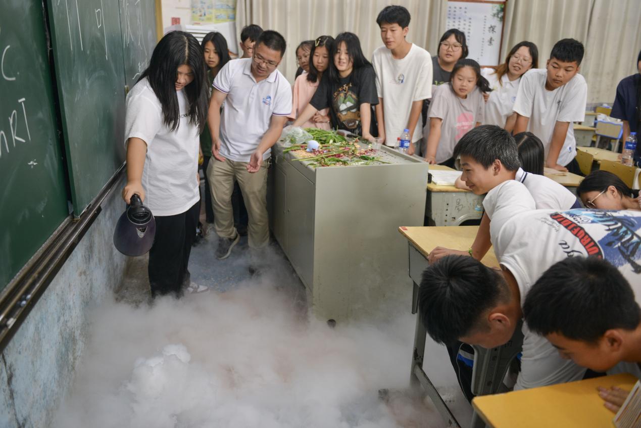 为激发员工对科技的兴趣和爱好,提高员工化学学科素养,增强其创新精神和实践能力,7月8日上午,SUNBET申博体育曹佳民博士为东堡中学的同学们上了一节“神奇液氮”化学实验课。
