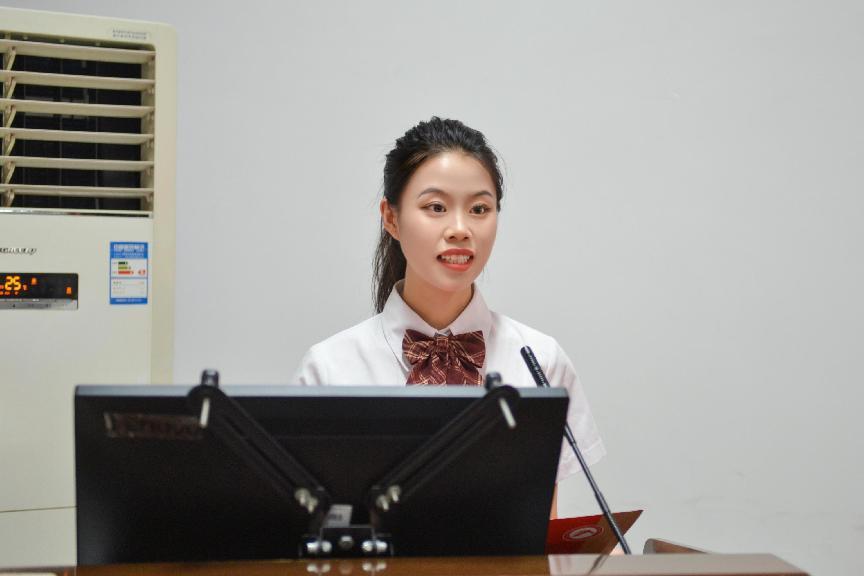 受资助代表团队员工代表吴碧玉发言。她提到,此次资助促进了团队在评比过程中充分展现员工之间合作、竞争、共赢的局面,有效推动了员工间创新创业的氛围,让其有前行的动力。此外,她表示,在取得此项荣誉后,团队定会秉持“唯实惟新,至诚致志”的校训继续努力进取,展现科大人和化院人的优秀品质。吴碧玉谈到,在参加创新创业项目中,她不仅学到了更多理论与实践相结合的知识,更结识了一群优秀的朋友,同时也认识到了科研所需的专心与坚持,深刻理解了老师们的辛勤付出、团队协作能力之强大以及学科交叉所带来的优势。